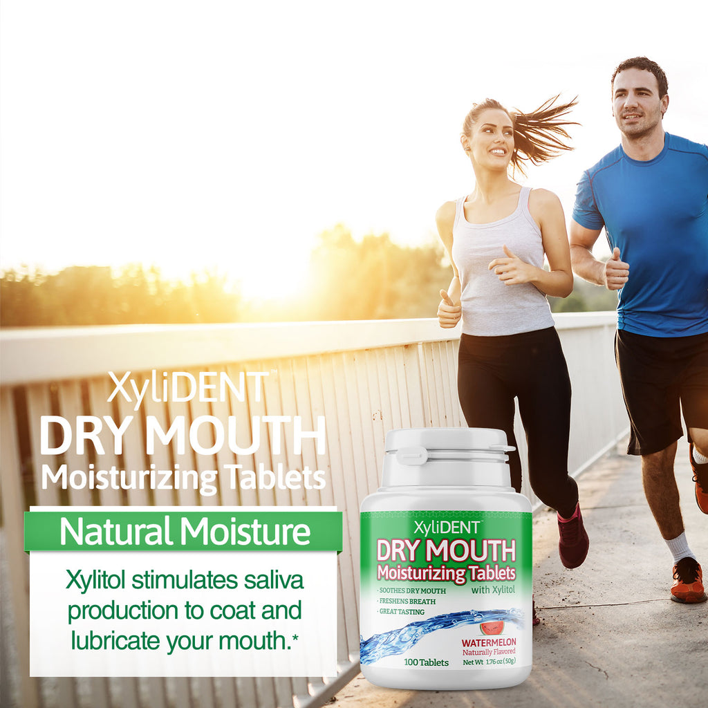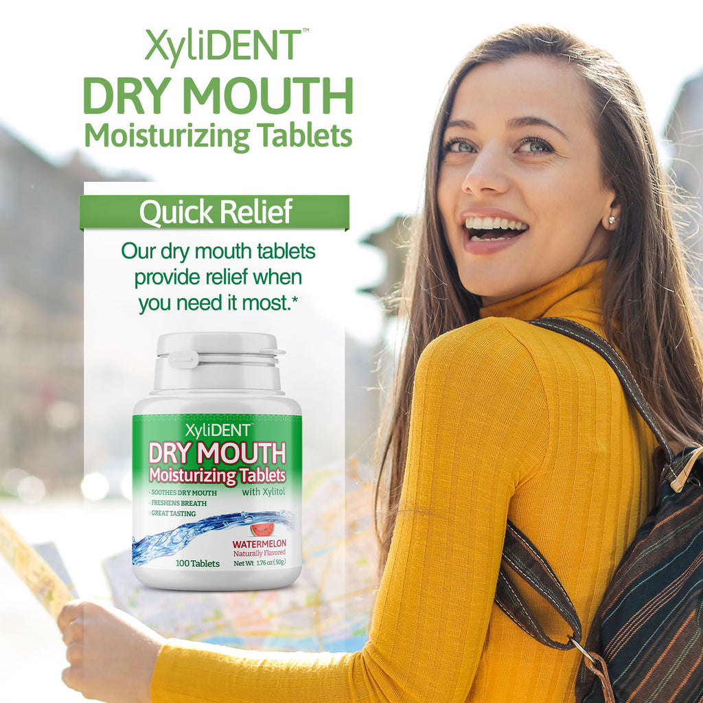 - XYLITOL SOOTHES DRY MOUTH – XyliDENT’s Xylitol dry mouth watermelon tablets help stimulate saliva production to naturally moisten your mouth and slow the rate and amount of acid production in the mouth. This reduction of acid-producing bacteria also helps protect from increased risk of cavities, gingivitis (gum disease) & bad breath.